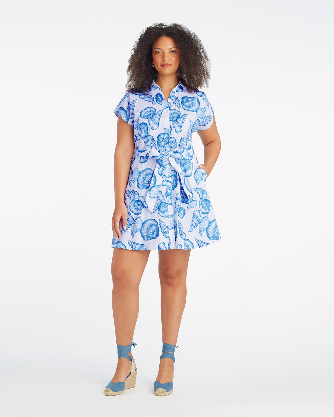 Button things up. Cut from printed 100% cotton, our Trisha Shirtdress in Seashells is a perfect, polished option for whatever you’re up to this summer, from weekend barbecues to seaside dinners with the fam. Dress it down with a pair of white sneakers, or try high-heeled sandals for a more elevated look.