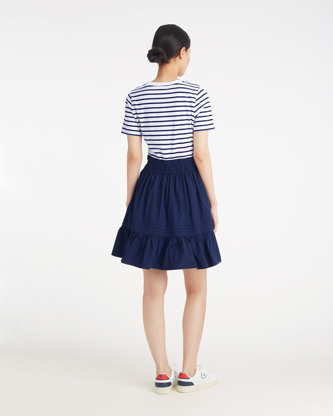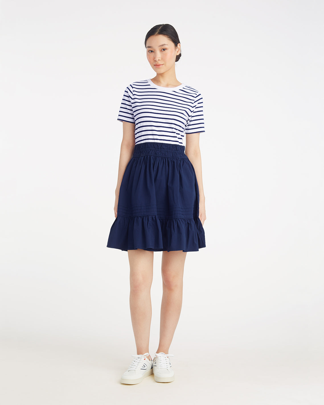 Mix things up. Our Wilson Midi Dress in Navy Stripe pairs a striped crewneck top with a perfectly coordinated navy skirt, so you’ll look put together in seconds. Wear it to run errands with your favorite sneakers, or switch to sandals (high- or low-heeled) for dinner dates, drinks with friends and whatever else you’ve got planned.
