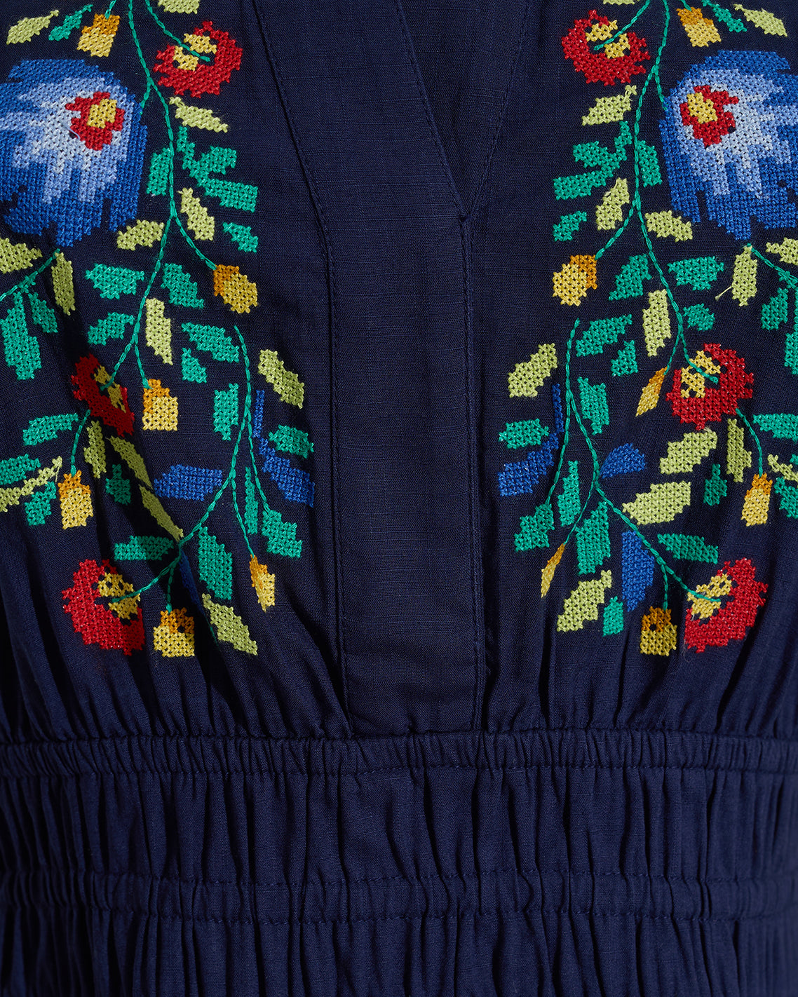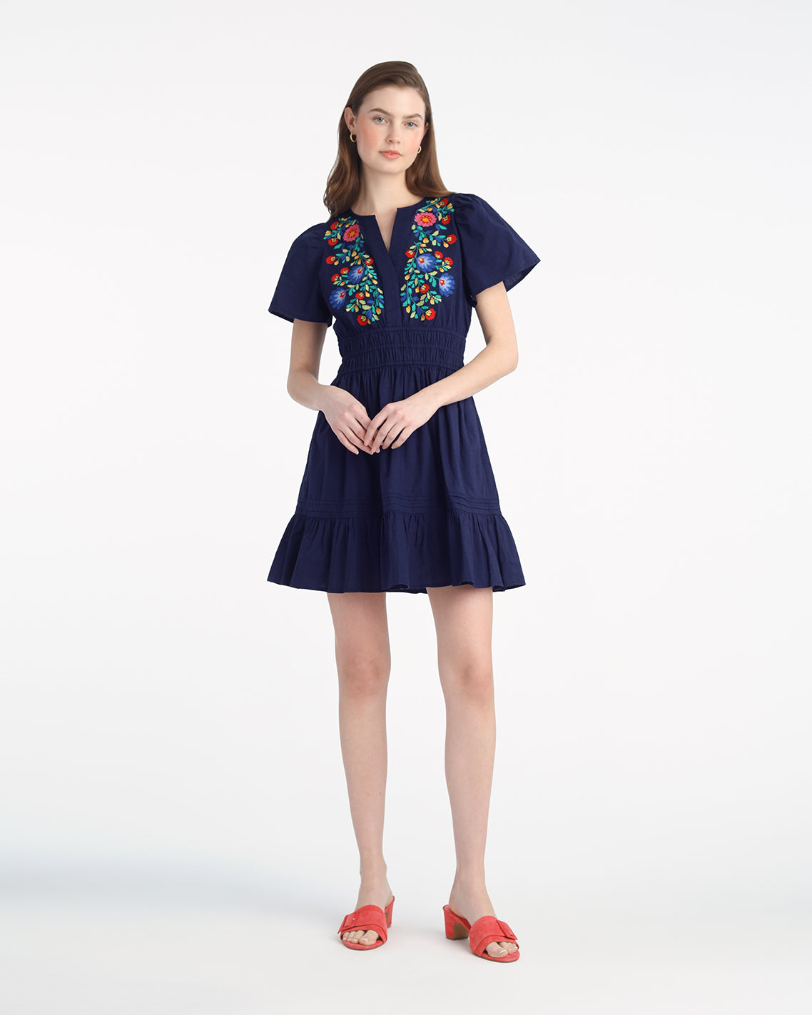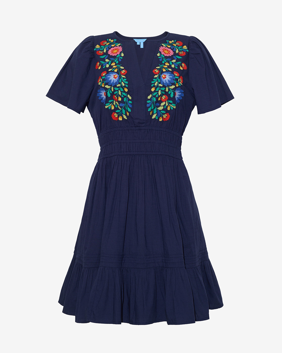 Nice threads. Cut from 100% cotton, decorated with colorful floral embroidery, and finished with flattering, comfortable details like the open neckline and elasticated waist, this version of our popular Wilson Mini Dress is a perfect mix of easy and pretty. Wear it with your favorite sneakers to run errands, then switch to sandals (high- or low-heeled) for dinner dates, drinks with friends and whatever else you’ve got planned.