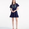 Nice threads. Cut from 100% cotton, decorated with colorful floral embroidery, and finished with flattering, comfortable details like the open neckline and elasticated waist, this version of our popular Wilson Mini Dress is a perfect mix of easy and pretty. Wear it with your favorite sneakers to run errands, then switch to sandals (high- or low-heeled) for dinner dates, drinks with friends and whatever else you’ve got planned.