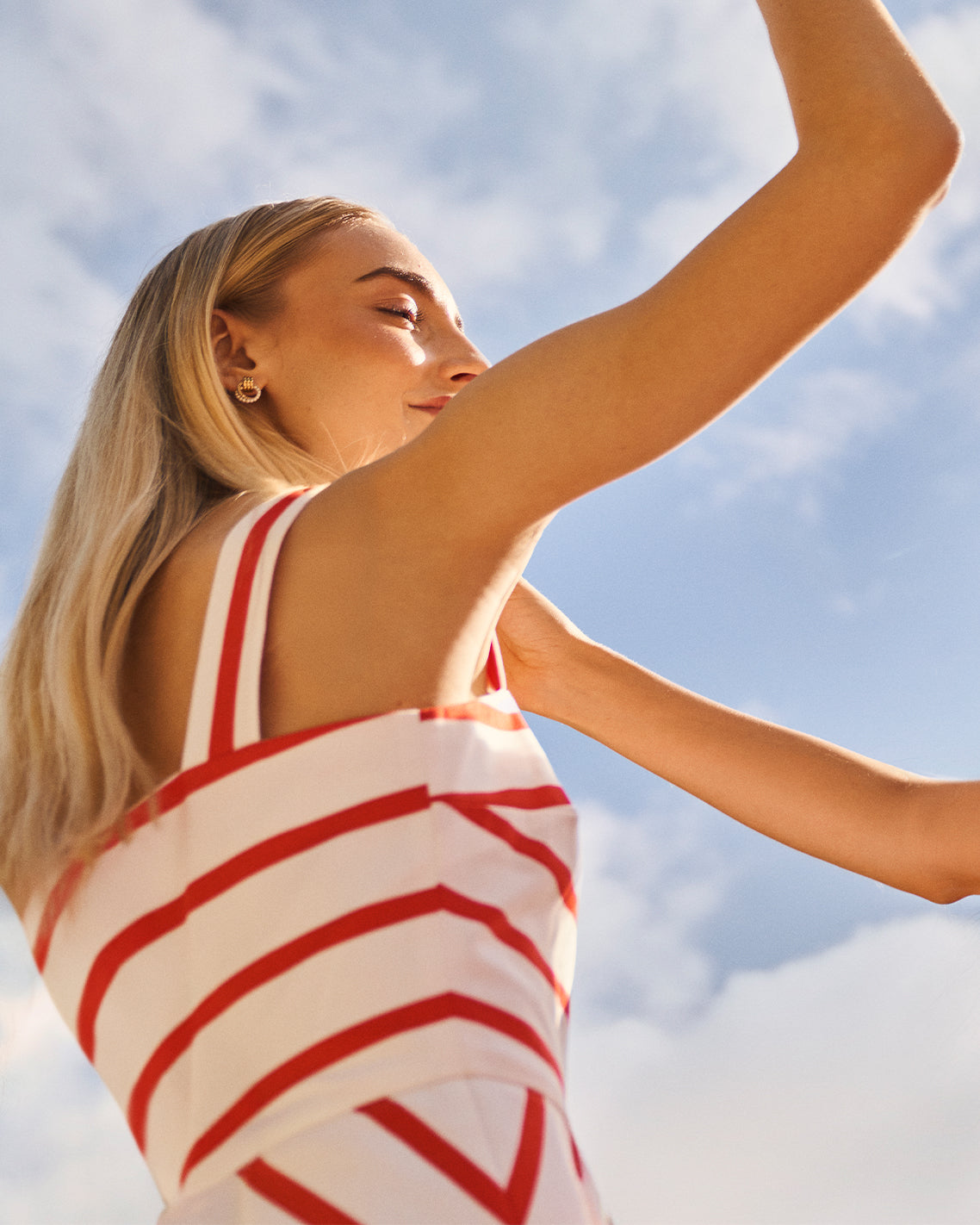 Love wins. Our Zoe Love Circle Dress in Red Wentworth Stripe is a new take on our iconic Love Circle silhouette, cut from striped, structured cotton with the perfect amount of stretch. Wear it with a cardigan and your favorite high-heeled sandals (or sneakers!) to dinner dates, backyard barbecues, poolside parties and more.